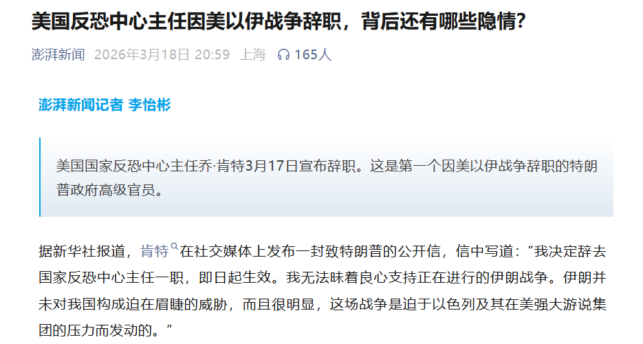 前两天,牢美反恐中心主任肯特宣布辞职。措辞非常有趣,说不能违背良心。